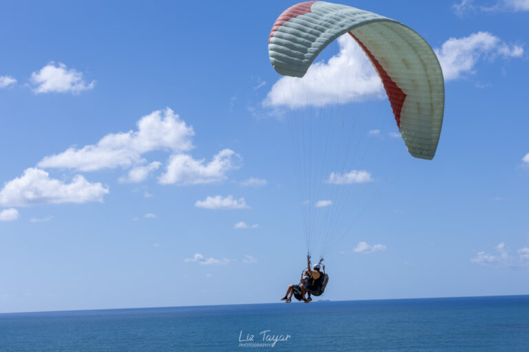 הליכה קלה של כמה צעדים יחד עם המדריך, והמצנח ישא אתכם ברכות מעלה אל השמיים. מעכשיו ועד הנחיתה, כל מה שנשאר לכם לעשות זה להישען לאחור, לנשום את האוויר הפתוח וליהנות מהנוף הכי יפה בישראל – קו החוף הכחול שנפרש מתחתיכם ללא גבולות. חוויה של חופש מוחלט שתישאר איתכם עוד הרבה זמן
